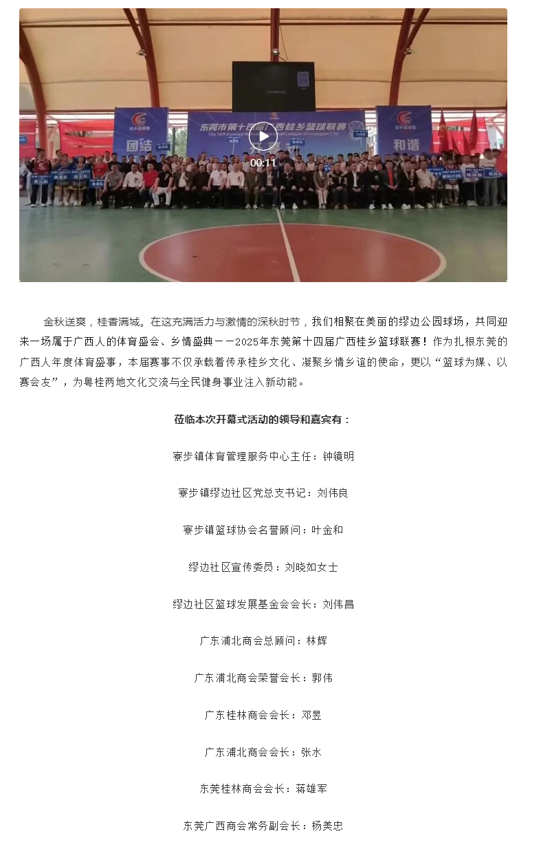 (东莞)第十四届广西桂乡杯篮球联赛在寮步镇缪边社区隆重开幕